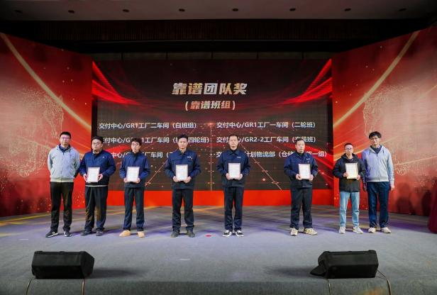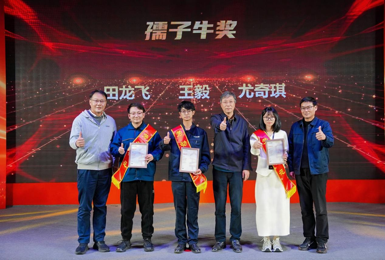 闭幕式后,年会进入年度先进表彰环节。公司对在2025年度工作中表现突出的先进集体与个人进行了隆重表彰,特别邀请公司董事长及董事为孺子牛颁奖。获奖代表依次登台接受荣誉,聚光灯下,榜样们的风采不仅彰显了靠谱文化的行为成果,更激发了全体员工向优秀看齐、共同奋进的昂扬斗志。