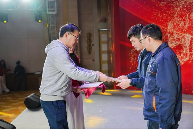 闭幕式后,年会进入年度先进表彰环节。公司对在2025年度工作中表现突出的先进集体与个人进行了隆重表彰,特别邀请公司董事长及董事为孺子牛颁奖。获奖代表依次登台接受荣誉,聚光灯下,榜样们的风采不仅彰显了靠谱文化的行为成果,更激发了全体员工向优秀看齐、共同奋进的昂扬斗志。