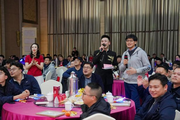 随后的文艺演出与互动、抽奖环节精彩纷呈。歌舞节目轮番上演,展现了中巨芯人多才多艺、朝气蓬勃的另一面。精心设计的互动游戏巧妙融入企业文化元素,在欢声笑语中深化了团队默契。活动最后,公司EMT成员集体合唱,用歌声表达与全体员工同心共进、奔赴未来的坚定决心,引发了全场热烈共鸣。